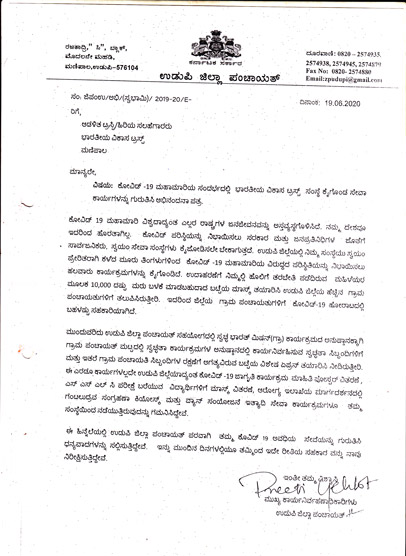 Appreciation letter by CEO of Zilla Panchayath, Udupi recognizing BVT’s outstanding and need based efforts done at Udupi and surrounding areas / districts during COVID period – I & II wave.