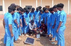 At Ahamednagar Maharashtra from 22-03-2022 to 31-03-2022 conducted one month training program on solar skill development for ITI and other students at Don Bosco Grameen Vikas Kendra Ahmednagar Maharashtra. Sessions included theory on solar cells, solar equipments, site survey, solar gird tie systems, inverters, practical session on installing solar street lights, home lighting systems, water heater etc. about 32 students were participated.